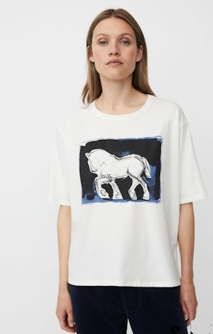 This solid colour top with a fabulous print is made from soft cotton and has a classic fit with straight lines for comfort. Designed with a round neck and short side slits, this top is cosy and comfortable to wear. Great with a pair of jeans for a casual feminine look.