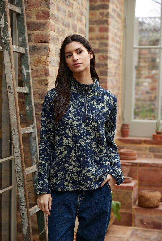 Noia Printed Sweatshirt Textured Leaf Navy Blazer