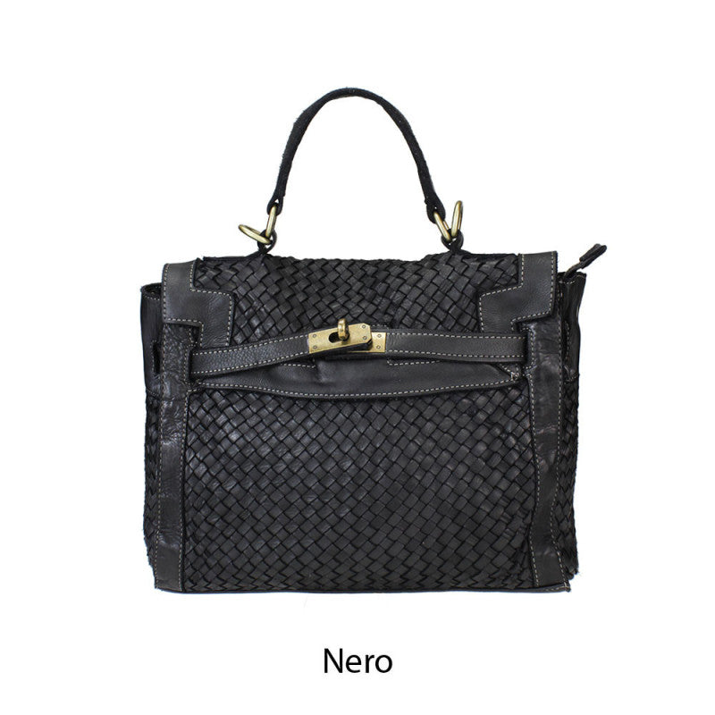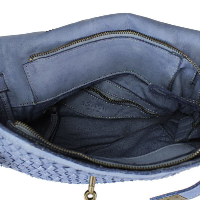 Soft woven leather bag. Fully lined with internal pockets with adjustable and removeable carry and shoulder strap.