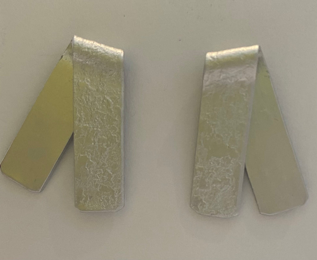 These stud earrings are crafted from folded aluminium strips and available in four different colours. Simple elegance!
