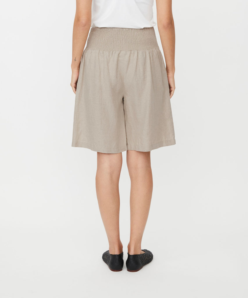 These loose-fitting, airy shorts are the only shorts you'll need this summer. Crafted from soft linen they have a wide smock around the back, making them ultra comfy. Falling just above the knee they have side pockets too!
