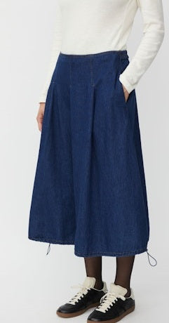 Dreaming of a timeless denim skirt you can wear again and again? This model is a must-have in your wardrobe. The slightly undulating skirt and delicate pleats at the front create a feminine look with lots of movement. The skirt is crafted in soft, light denim fabric that's lovely to wear all day. The elasticated hem can be adjusted, allowing you to decide the silhouette - from relaxed to more balloon-shaped. Style it with a patterned top, a simple t-shirt or chunky knitwear to create your own personal look.