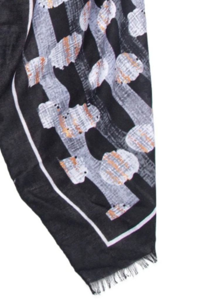 Black Retro Dots and Stripe Print Lightweight Scarf