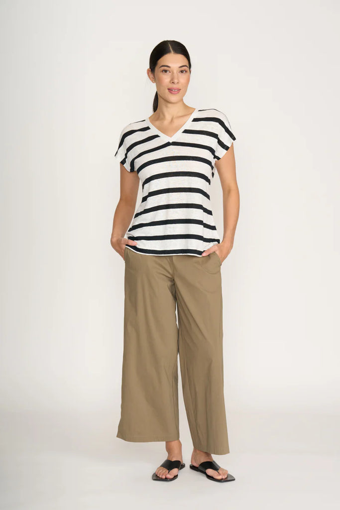 Step into effortless style with the Foil Pant Broad Horizons, a versatile wardrobe essential designed with a flattering trapeze cut. Crafted from a comfortable cotton blend, these wide-leg pants are the perfect balance of structure and stretch, making them ideal for all-day wear.